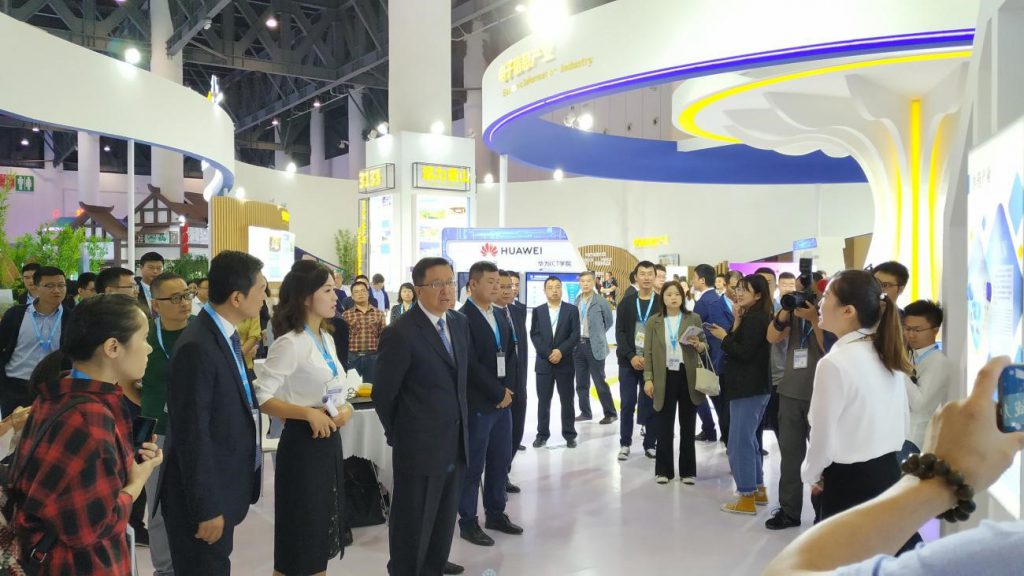 眉山市市委書記慕新海視察展位,與參展企業(yè)代表溝通。新漁生物,西博城6號(hào)館,眉山市展區(qū)與您相約!