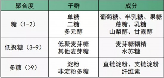 據(jù)介紹,1998年,F(xiàn)AO/WHO根據(jù)其聚合度對(duì)食品碳水化合物分為三大類,包括糖(葡萄糖、白砂糖、木糖醇),寡糖(也叫低聚糖,比如說麥芽糊精和低聚果糖)和多糖;而營(yíng)養(yǎng)科學(xué)領(lǐng)域中所說的“糖”,是指第一類糖里的單糖、雙糖和糖醇,也就是說糖是碳水化合物里的一種。