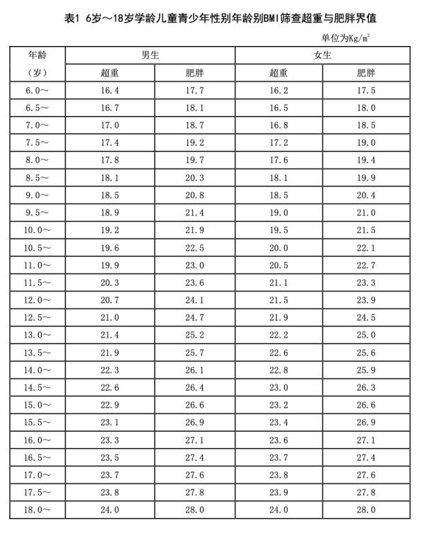 體質(zhì)指數(shù)(BMI)是國際社會推薦的評價兒童(≥2歲)超重和肥胖的首選指標(biāo),BMI=體重(kg)÷身高的平方(m2)。孩子每個年齡階段的BMI是不一樣的:1歲時BMI值最高,隨后開始下降,到6歲~7歲脂肪重聚期開始出現(xiàn)反彈,此后逐漸升高至接近成年人的水平。2-5歲兒童參考“中國0-18歲兒童、青少年體塊指數(shù)的生長曲線”中2-5歲兒童超重和肥胖BMI篩查界值,6歲及以上兒童參考中國行業(yè)標(biāo)準(zhǔn)“學(xué)齡兒童青少年超重與肥胖篩查”(WS/T 586-2018)界值點。